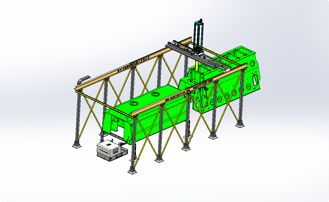 机器人地轨移动滑台,自动喷涂旋转台,静电喷枪或者静电旋杯等主要硬件配置。